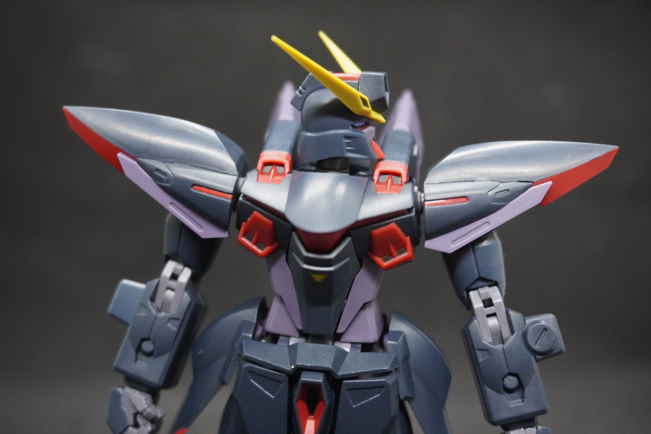 バストアップで1枚。センサーやカメラアイはクリアではなく、ガンダムマーカーのメタリックカラーのような感じの質感で塗られています。個人的に結構特徴的なアンテナの穴(?)の部分もしっかり再現されています。