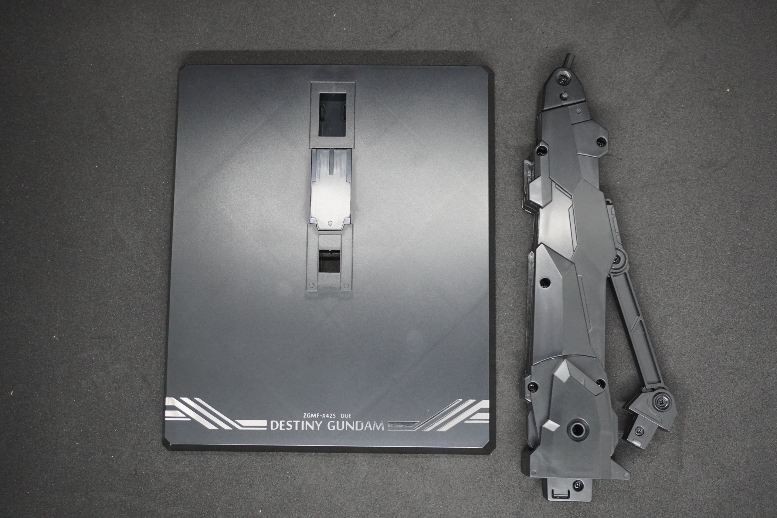 スタンドのデザインは黒に「Destiny Gundam」と型番がシルバーで書かれているというシンプルなもの。シンプルさが逆にいい感じです。