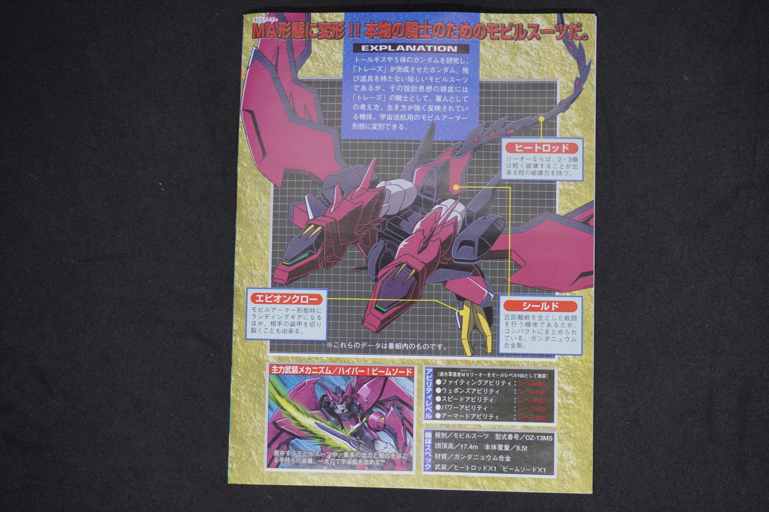 説明書はエピオンの組み立て説明書とゼクスの塗装レシピなどが載っているものの2枚が付いています。組み立て説明書の裏にはエピオンの詳細な設定等が書かれています。右下にはガンダムW特有のアビリティポイントの記載があります。