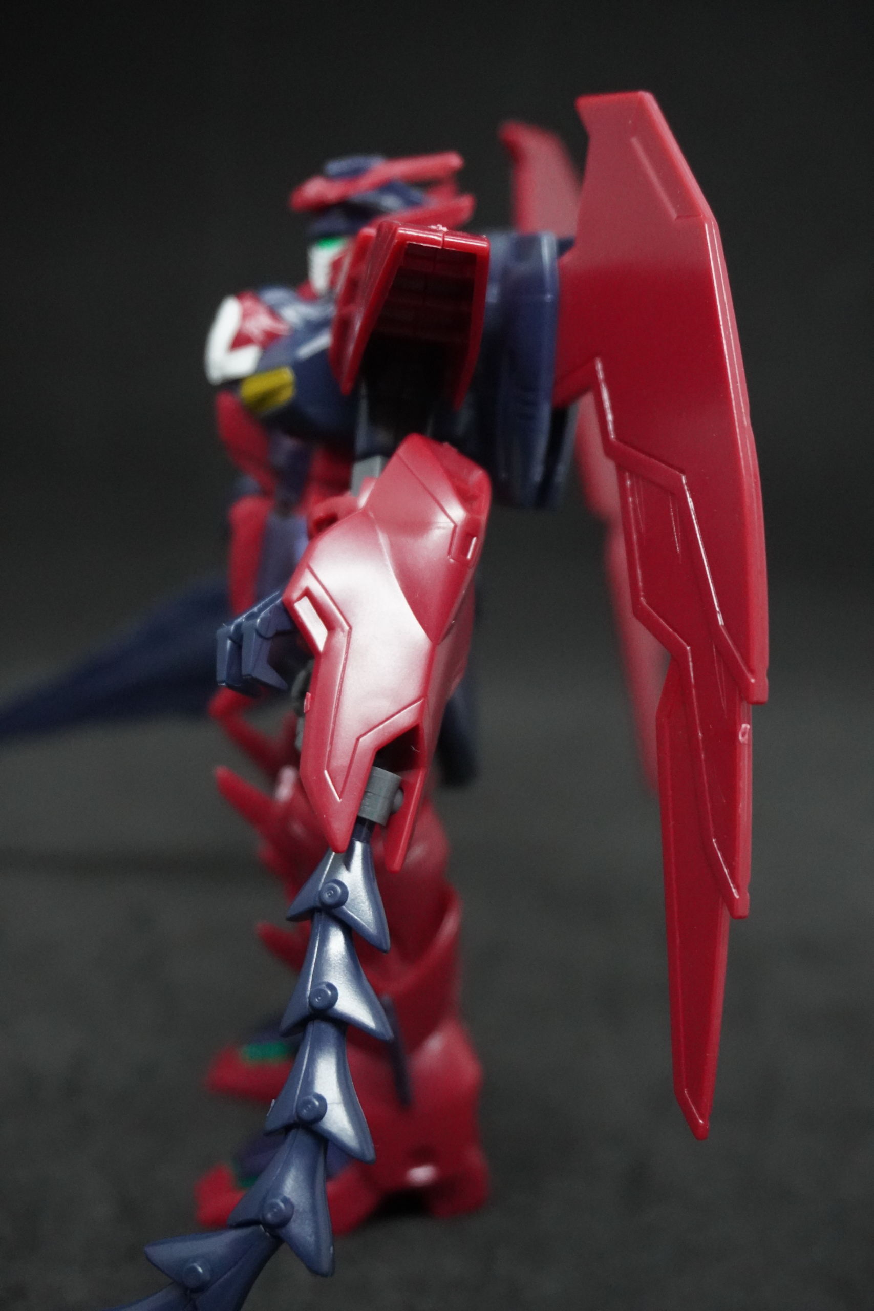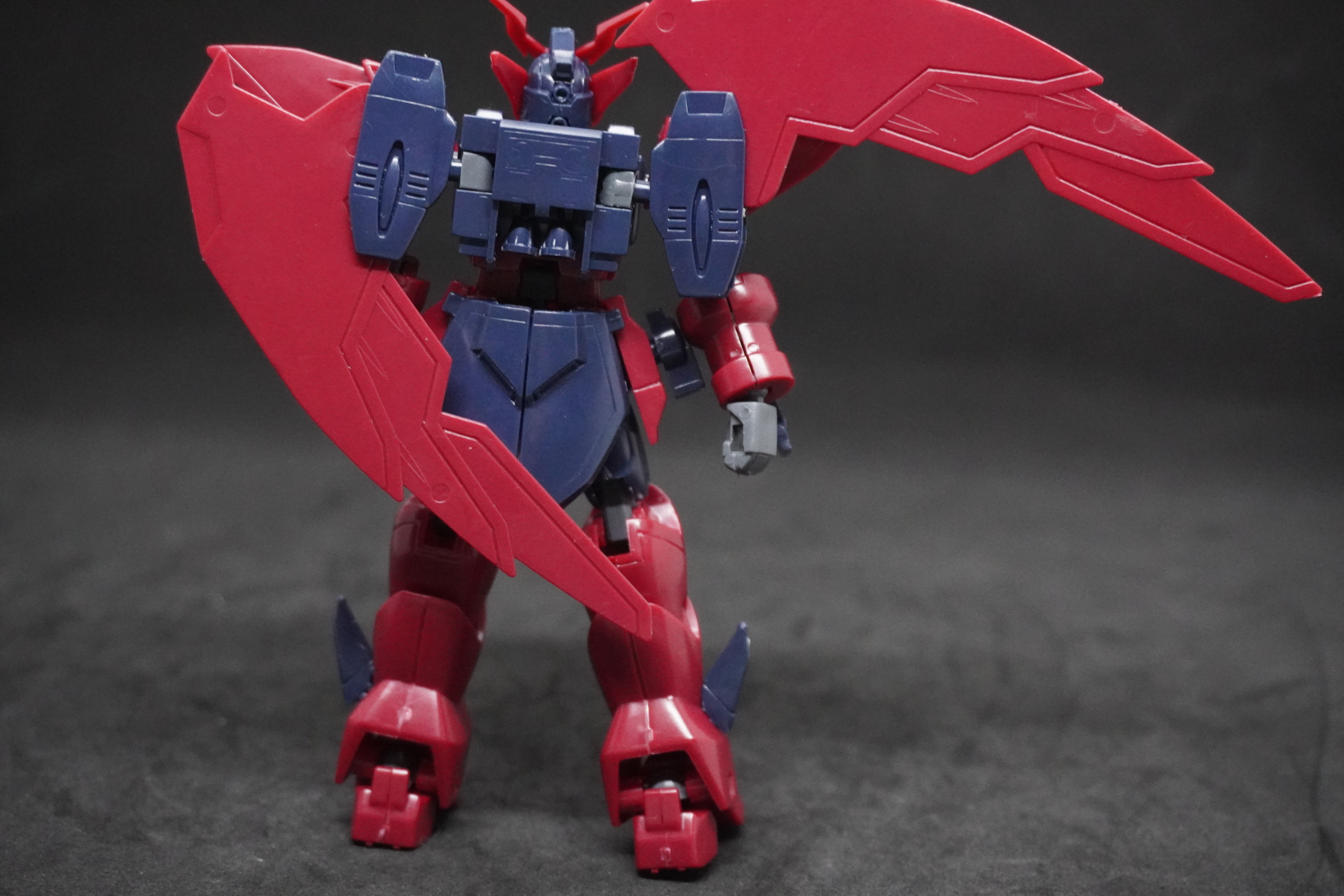 背部のウイングは結構柔軟に動かすことができ、様々に表情をつけることが可能です。大型ですが、本体の可動を阻害しません。