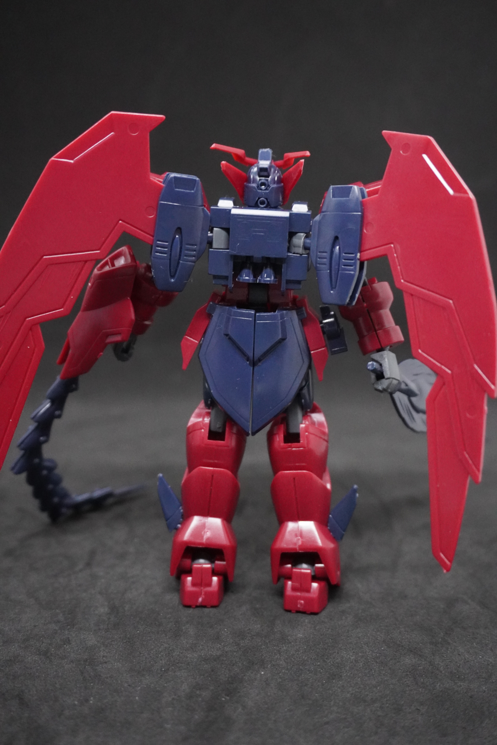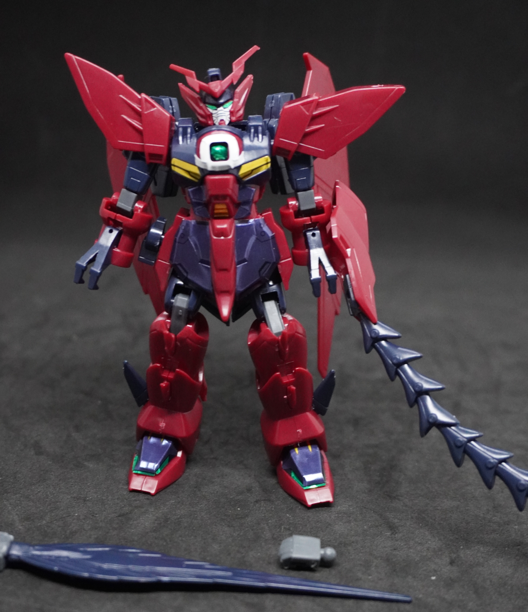 組み立ててみるとこのような感じになります。シールで色分けをするような形になりますが、ぱっと見はそんなに違和感はないのではないでしょうか。明らかに色が足りてないのはウイング部分とビームソードのみな感じです。普通にエピオンだとわかりますね。