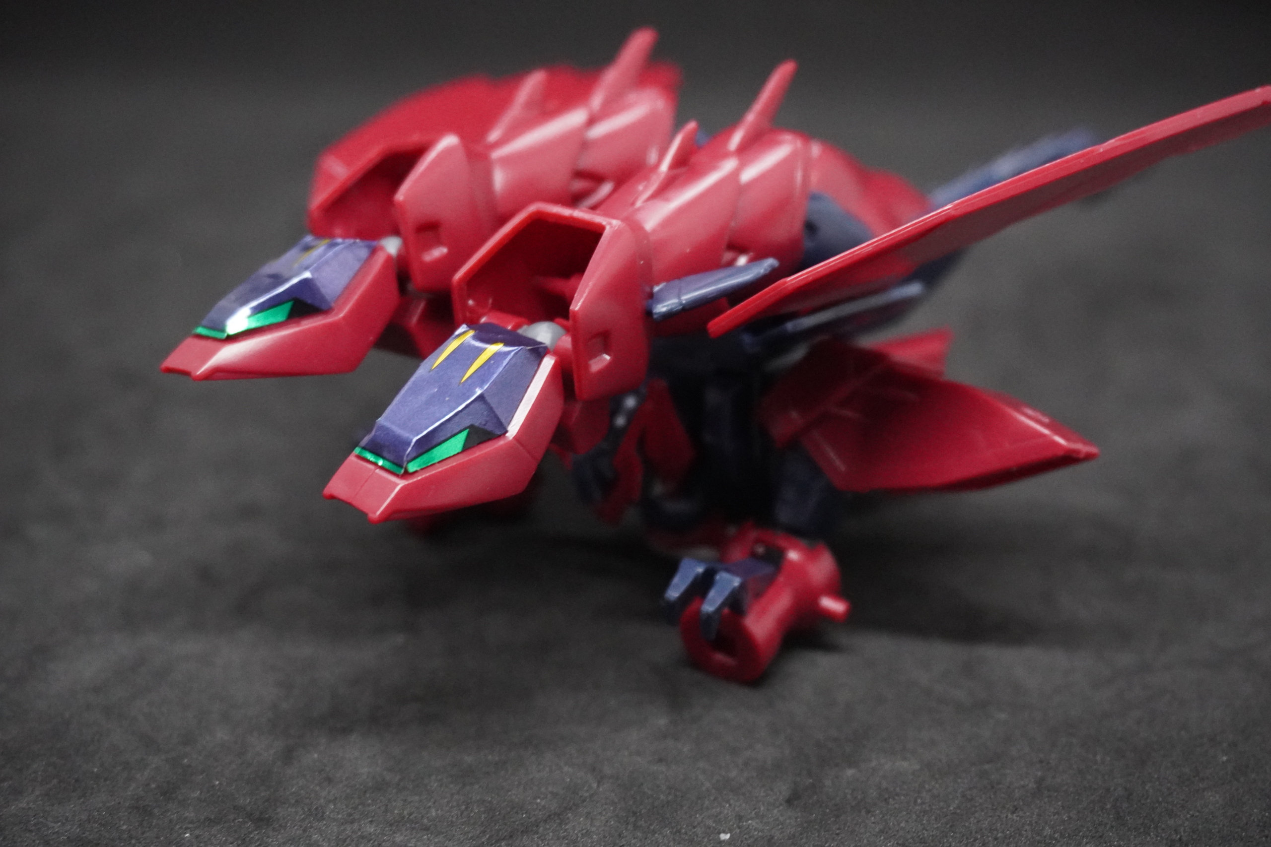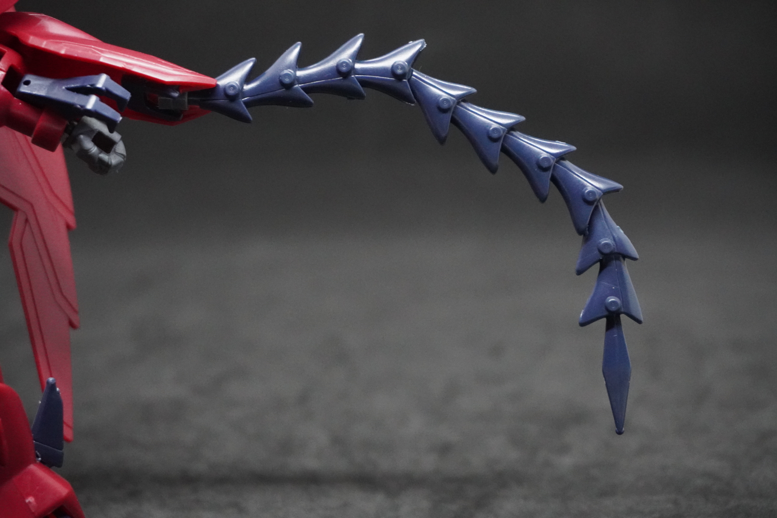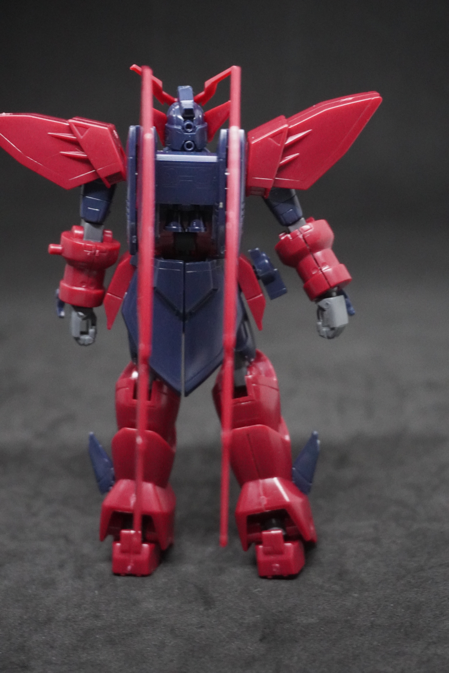 ヒートロッドを取り外し、足をそのままエビぞりの要領で前に持っていき、取り外したリアアーマーとヒートロッドを取り付け変形完了です。